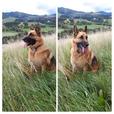 Our girls loved the top block where our Pinot Grigio is grown. Ele is short for Extinction Level Event and Xena was named after Kiwi icon Xena the Warrior Princess. Both patrolled the vineyard looking for trouble (and never looking like they were the culprits). We miss them dearly. Buy on our online sales or at our cellar door
