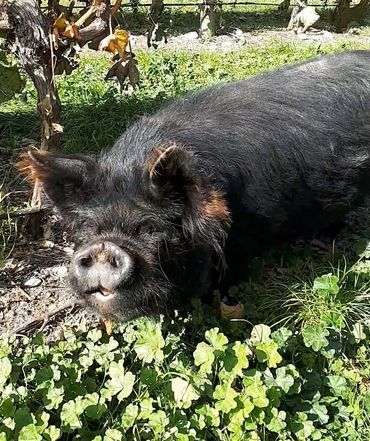 Ms Coco is a kune kune pig - a breed native to New Zealand. Known for taking herself on adventures through our Sauvignon Blanc, she could often be found snoozing beneath the vines.